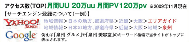 地域情報ポータルサイト「キットプレス」は、南大阪に住んでいるグルメやファッション、美容に興味のある活動的でハイセンスな女性たちをターゲットに構成しています。これは、当社発行のグルメムック「泉州のおいしいお店」シリーズ(780~980円)の読者が中心であることからもわかります。