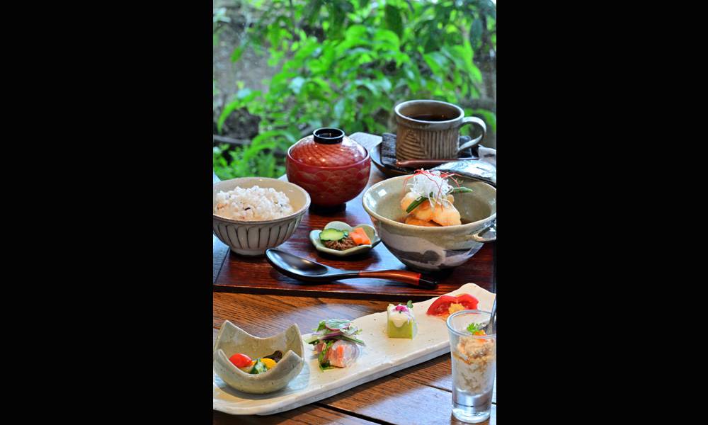 「日ごろ、仕事や家事、子育てに忙しい女性の癒しの空間になれたら」。店名は「くつろぎ」の言葉から“く=苦”を取り「つろぎ」と名付けたそう。地元野菜や新鮮食材を使い、食への思いを込めたヘルシーな創作料理や、季節感あふれるスイーツには笑顔がこぼれる。店主亡父の手作り陶器で飲むコーヒーも格別だ。こだわりは食材だけではなく、食器や調度品も吟味して、とっておきの時間を提供。ランチはもちろん、家族や仲間たちとの特別な記念日にも訪れたくなる。